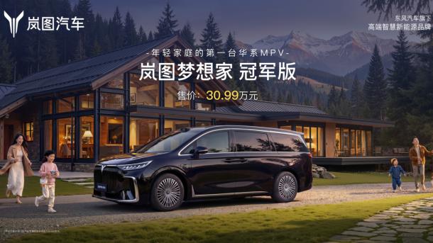 岚图梦想家冠军版售30.99万,新车采用曜黑格栅设计,搭载华为乾崑智驾 ADS4 与鸿蒙座舱5。