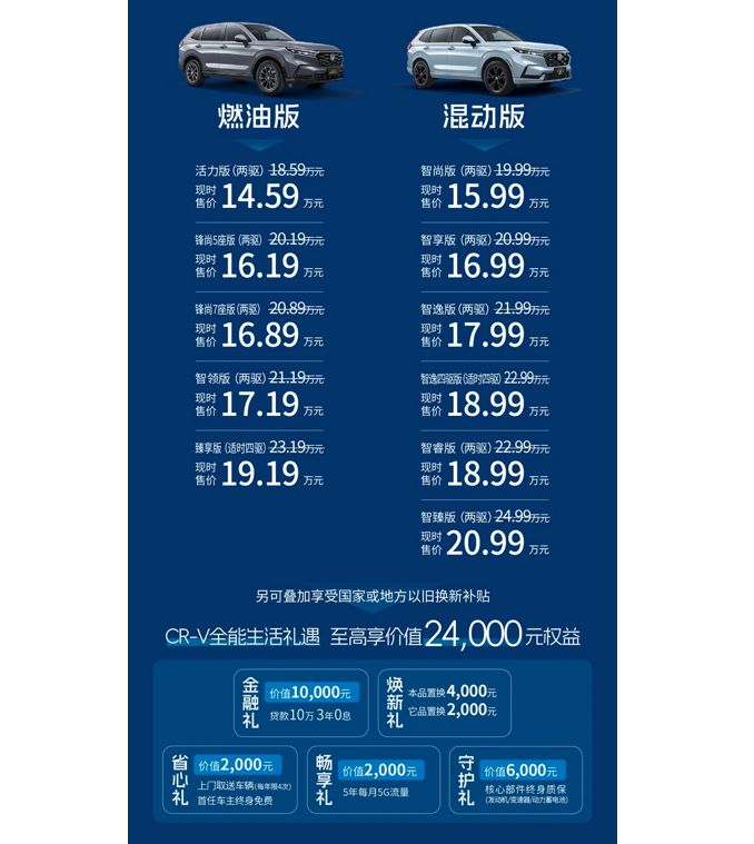 9月22日,东风本田CR-V全球30年荣耀款在中国武汉正式上市。为了回馈广大用户,新CR-V燃油版的官方指导价保持不变,同时紧跟用户需求,新CR-V混动版配置全面升级,四驱系统配置到过往畅销的版本上,新增智逸四驱版,并下调高配版本指导价。