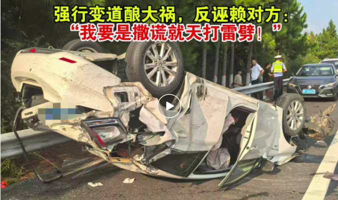 近日,江西抚吉高速永丰段,曾某驾车载着家人在慢车道行驶时,在丝毫未与快车道车辆拉开距离的情况下突然向左变道,导致两车发生碰撞。曾某的车随即失控四轮朝天翻车,并在路面上旋转了好几圈才停下。