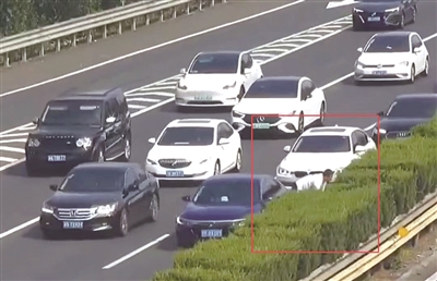 10月5日上午9时50分许,G25杭新景高速杭州段,一辆灰色小轿车突然在第一车道停车,后方车辆纷纷急刹避让。