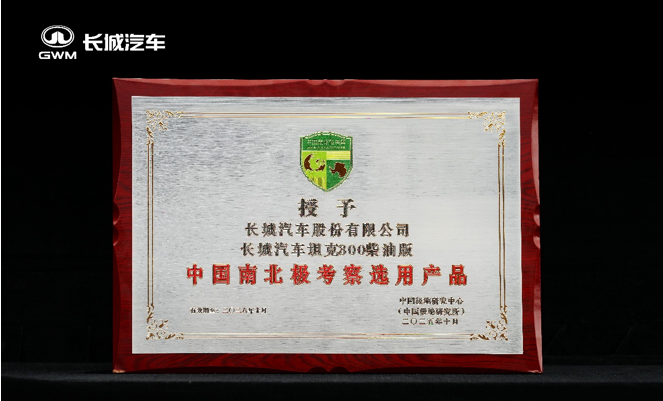 坦克300柴油版被授予“中国南北极考察选用产品”