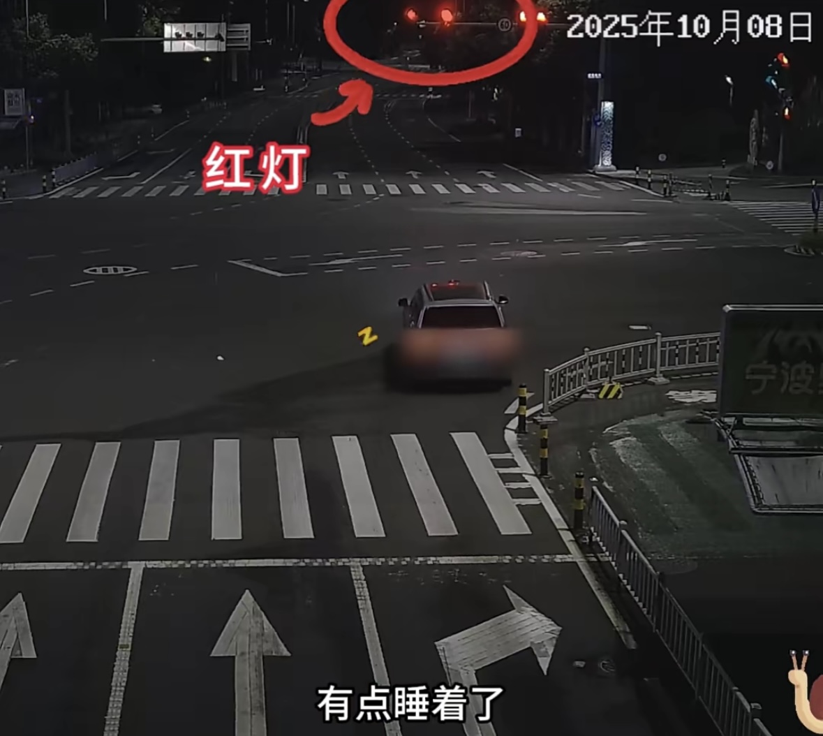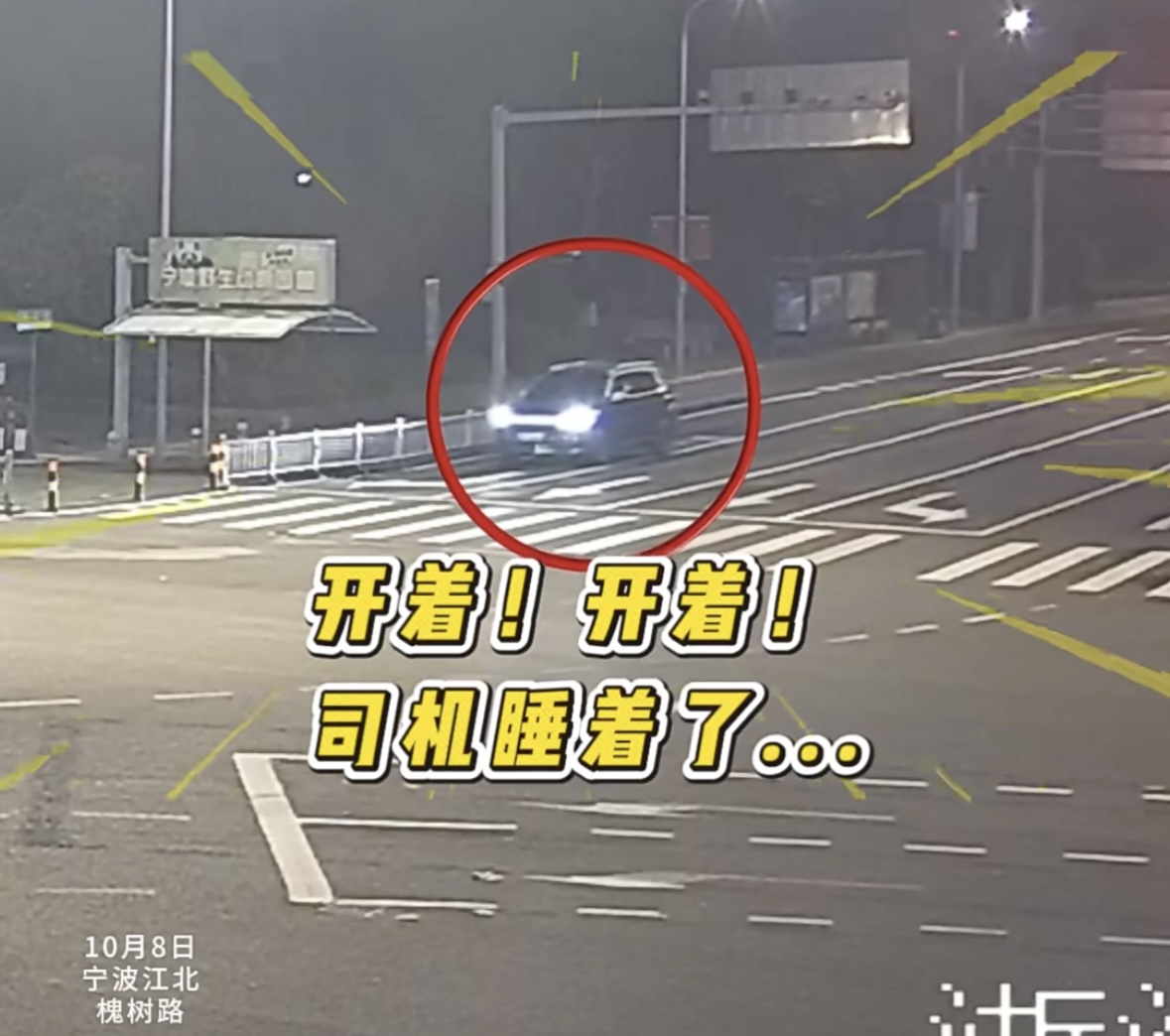 2025年10月8日,宁波街头。凌晨03:30分许,一辆小车如“蜗牛”般在路上行驶,在过路口时刮了柔性隔离柱后继续缓慢行驶,好不容易过了路口,紧接着便开始向左偏离车道,最终冲撞上中央护栏。