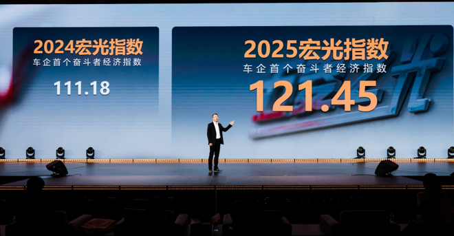 国际品牌专家姚承纲在大会上发布了中国首个展现基层奋斗者状况的经济指数——“宏光指数”。2025年宏光指数达到121.45分,较去年提升9.23%,反映出基层经济的活力与奋斗者“越拼越勇”的姿态。