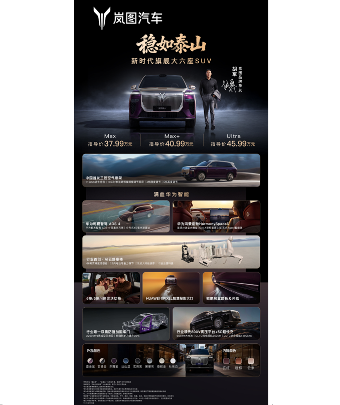 首发三腔空悬+800V岚海智混 岚图泰山37.99万起售