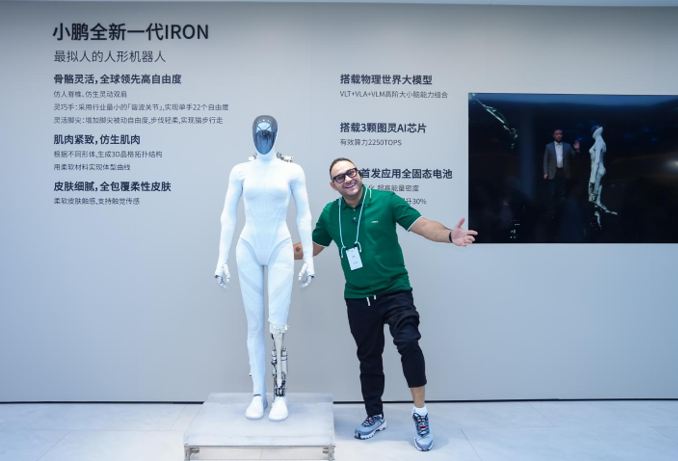 值得一提的是此次车展发布会,小鹏汽车以一段90秒全新一代IRON介绍小鹏X9超级增程视频拉开序幕,视频中的IRON以“特别导览员”身份通过流畅的语音讲解与小鹏车型智能互动。那台在小鹏科技日上“剪腿版”的全新一代IRON,俨然成了2025年广州车展的新晋顶流“网红”,吸引现场观众纷纷“零距离”贴近验身,全球媒体纷纷卷起裤腿与其合影。