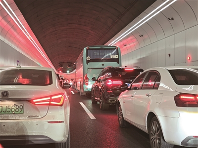 7点10分,姜女士开车到市心北路庆春隧道入口处,发现堵车了。进隧道的车排起了队,行驶缓慢。这让姜女士有点焦虑。