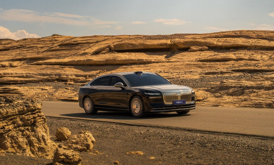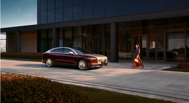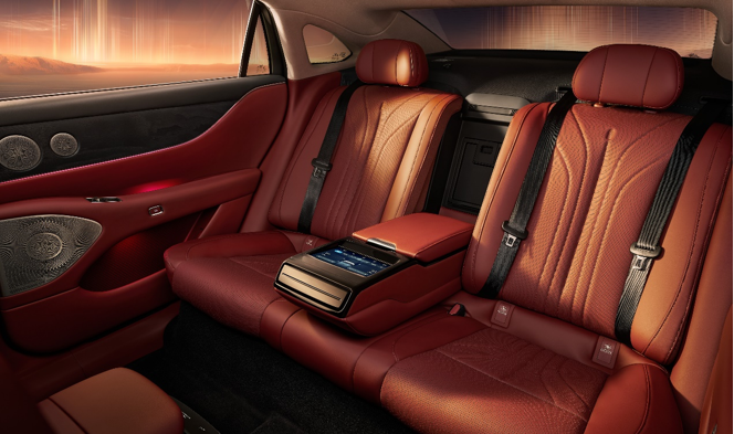 新车提供双拼与纯色总计6种外观颜色,包括金耀黑、金銮红两大双拼配色及杜若白、宸星灰、香槟金和玄英黑四款纯色车身。车身尺寸达5125/1985/1522mm,轴距达3010mm,恢弘体量自带舒展大气的旗舰气场。前脸采用“鲲鹏展翼”造型,彰显前瞻视野与沉稳气场,配合“击水三千”LED大灯及动感流畅的车身线条,打造极强辨识度。细节之中,更添巧思。20英寸「光晖」轮毂彰显豪华格调,悬浮车标在轮毂转动中始终保持静止。