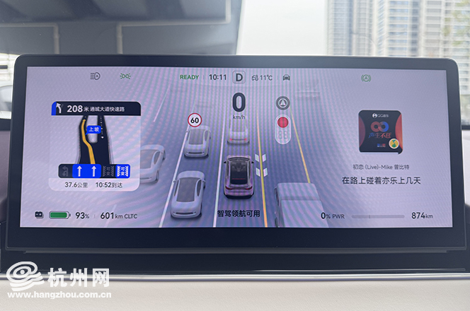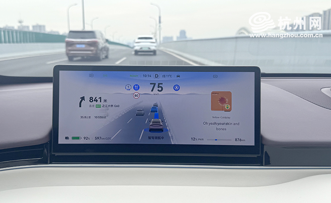 在返回杭州城区的过程中,在拥堵路况下,车辆的制动系统表现出了良好的线性控制,拥堵路段频繁的启停,是对电动车能耗管理能力的另一大考验。到达终点时,智界R7的表显电量充足,华为“巨鲸”800V电池平台提供最高855km续航,满足日常通勤与短途出游。