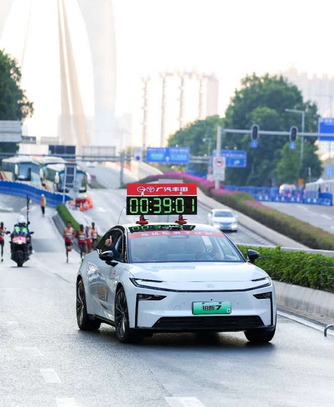 12月21日,广汽丰田•2025广州马拉松赛鸣枪开跑,丰田鸿蒙座舱豪华旗舰D级纯电轿车铂智7为赛事领航。这是广马赛事历史上首款豪华纯电领航车,也是铂智7的首次动态路跑展示。