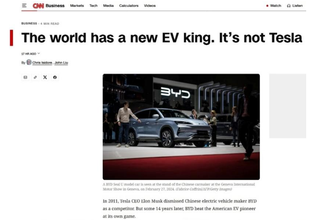 美国媒体CNN报道:世界迎来新的电动汽车王者,并非特斯拉