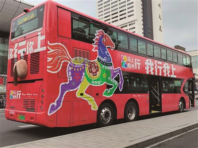 据杭州巴士传媒集团副总经理李辉介绍,这次杭州公交集团以“马上杭州行”为主题,将马年民俗文化、城市历史记忆与公共交通场景深度融合,让年味、传统文化流动起来。“像这次马年主题双层巴士,就是以古诗中‘五花马’为文化原型,将传统民俗艺术的鲜艳纹样与杭州路名进行结合。而车身印刻的‘你行你上’‘我行我上’的互动式主题延展文案,向市民传达出一种向上和向善的城市精神。”