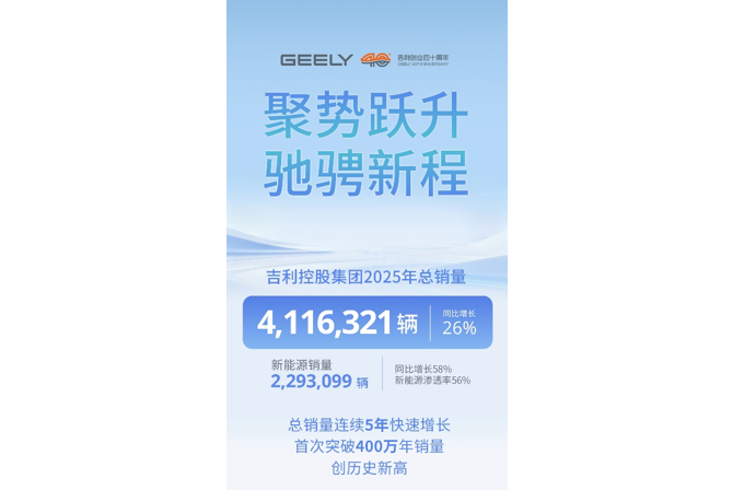 连续五年快速增长!吉利控股2025年总销量超410万辆