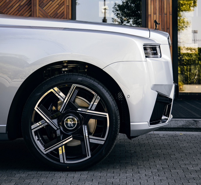 如今,BLACK BADGE库里南系列II的客户将可扩展外观车色的运用范围,包括所有车身下部饰面,以及经过巧妙强化设计的门槛下部、侧围及前保险杠下部。外观的点睛之笔在于其搭载的23英寸轮毂,这是劳斯莱斯首次为BLACK BADGE车型配备如此大尺寸的轮毂。从远处看,全新设计的轮毂似乎由5条高光黑银双色辐条组成。
