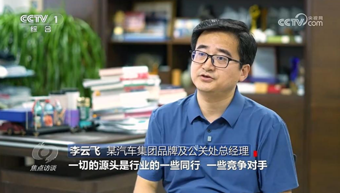 比亚迪集团品牌及公关处总经理李云飞在节目中表示:“黑公关、黑水军、黑自媒体都是表象,一切的源头是行业的一些同行、一些竞争对手”。对此,节目强调,整治汽车行业网络乱象并非单一企业的事,需要监管部门、车企、媒体及消费者协同发力,同时表态监管部门将强化执法力度,严厉打击网络黑产;同时,节目也呼吁车企,应坚守合规经营底线,主动拿起法律武器维护自身权益。