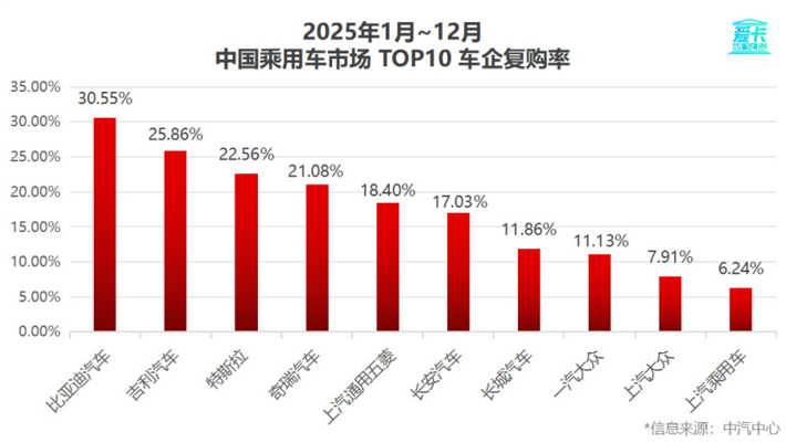根据爱卡研究院发布的《2025年车企复购率榜单》显示,比亚迪老车主复购率达30.55%,位居第一,大幅超越吉利、奇瑞、长安等传统主流车企。汽车行业“规模扩大必稀释忠诚度”的惯性认知,被比亚迪打破。