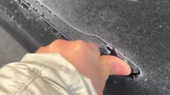 另一段网络视频则显示,隐藏式门把手在下雪天被冻住后,车门难以打开。