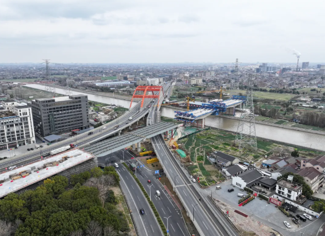 该工程位于临平与海宁交界处,是连接两地的交通要道,自项目开工以来便以高标准推进建设,着力打通区域交通联通“关键一环”。施工方重视进度、质量和安全,采用可视化数字沙盘、智慧化挂篮等先进措施和管理手段,保障工程安全和质量。施工过程中,跨星光街钢混梁吊装和跨运河二通道施工两大难点,给施工团队带来了不小的挑战。
