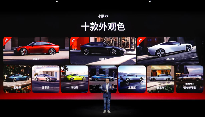 小鹏P7在原来极具辨识度的轿跑姿态上,再次挥洒灵感,发布星曜红、暗夜黑、星云白三款全新外观色。