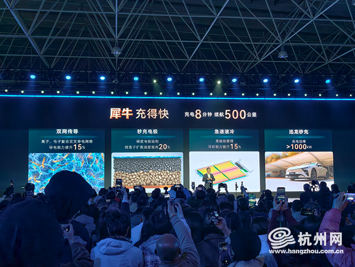 此次发布的犀牛电池,可实现充电8分钟续航500公里,最高循环寿命达5000次,采用360安全守护体系。奇瑞汽车股份有限公司副总裁古春山表示,该体系包含3道防线、6大场景验证及零缺陷质量目标,犀牛电池已形成犀牛H(混动专用)、E(纯电专用)、S(固态专用)三大产品系列,覆盖不同用户需求。