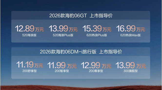 双豹全维进阶!2026款海豹06GT、海豹06DM-i旅行版双车齐发
