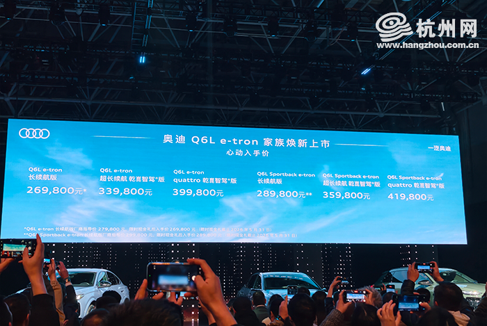 发布会上,新奢智电旗舰奥迪 A6L e-tron正式上市,售价30.98 万元-43.98万元。该车基于 PPE 豪华纯电平台打造,是豪华品牌中首款搭载华为乾崑智驾技术的C级纯电轿车,风阻系数0.22。车辆配备双激光雷达(恒温自清洁),支持城区与高速 NOA。座舱采用六屏联动,搭载隐私模式副驾屏与第二代电子外后视镜。