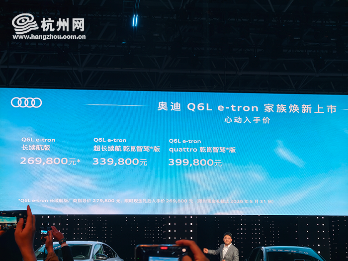 同期,豪华智电驾享SUV奥迪Q6L e-tron家族焕新上市,限时心动价 26.98 万元 - 41.98 万元。新车在智能、版本、性能三大维度升级,优化窄路掉头、环岛通行、远程泊车等功能。提供长续航、超长续航乾崑智驾版、quattro 乾崑智驾版三种版本,最高续航715公里,新增 quattro电动四驱版本,百公里加速 4.5 秒。