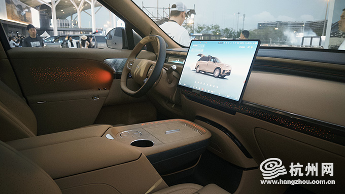 寰宇星空头等舱设计,双色分区规整有序,座舱轻盈整洁。消融主副驾隔阂,营造融洽的家庭出行氛围。内饰提供拂晓白、林雾紫、铂金棕三款配色,大面积温润皮质、真木、金属材质应用,将触觉与视觉的豪华体验推向极致。