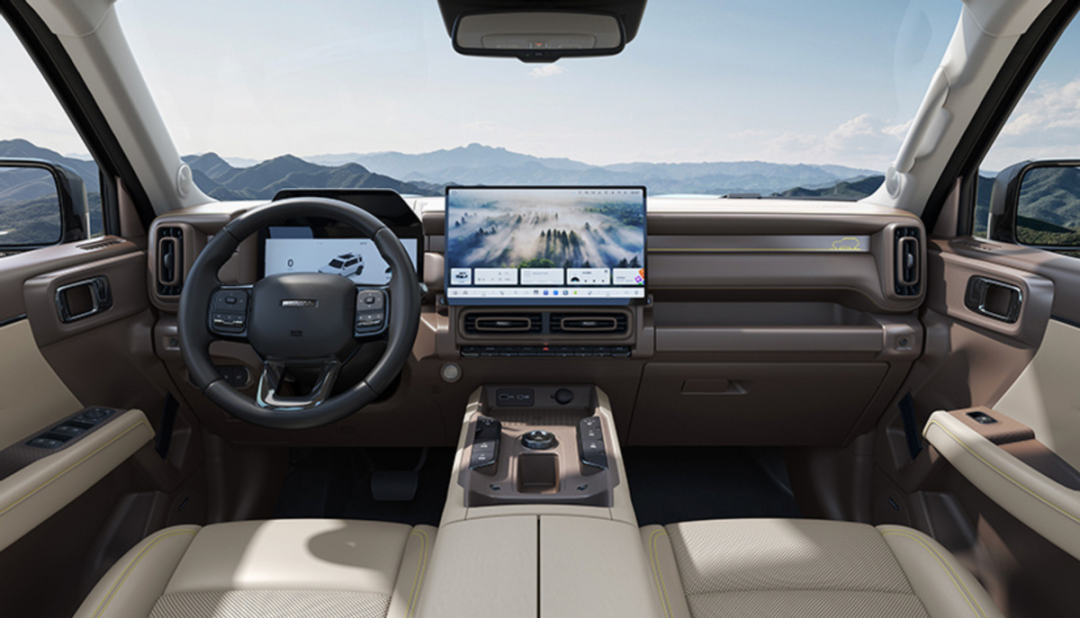 据官方介绍,Hi4系统采用前后轴双电机分布式布局,相比传统三电机四驱方案减少一个电机,系统提供纯电两驱、纯电四驱、串联、并联两驱/四驱等九种工作模式,可根据路况智能切换。车辆接近角为25度、离去角32度,空载最小离地间隙221毫米,涉水深度580毫米,并配备后桥电控机械牙嵌式差速锁。