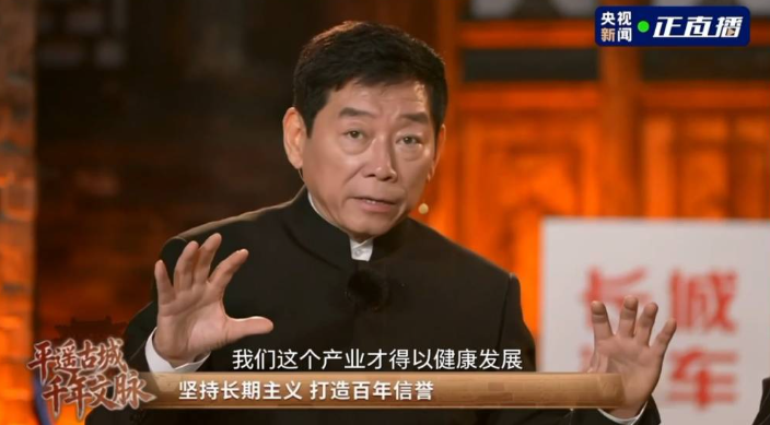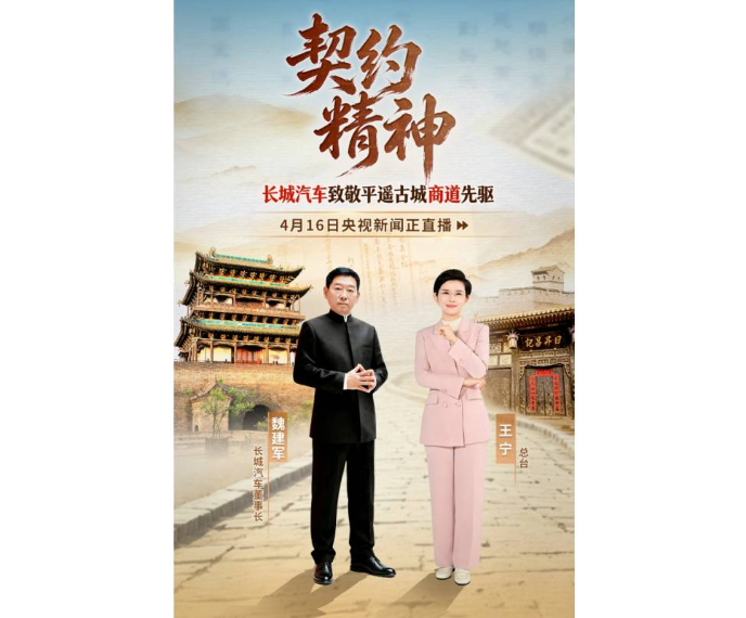 4月16日,央视《首屈一指》特别直播节目走进平遥,长城汽车董事长魏建军与知名主持人王宁、平遥商道研究专家郝新喜等人展开商道对话。此次对话以“致敬平遥契约精神”为主题,长城汽车溯源平遥商业文明,将当地的信义底色融入现代工业实践,实现传统商道与现代实业的跨越衔接。
