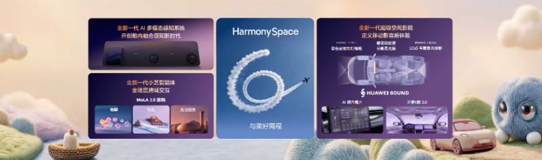 鸿蒙座舱 HarmonySpace 6 同步亮相,搭载AMS 三合一舱内 AI 多模态感知系统,可精准监测乘员状态与生命体征。小艺智能体基于 MoLA 2.0 架构升级,支持全场景跨域交互。座舱配备双 17.2 英寸蝶羽双联屏、HUAWEI SOUND AI 调音魔方、无麦 K 歌 3.0,并推出车载投影、AI 陪伴机器人等生态产品。华为乾崑 APP上线AR人找车功能,用户规模已突破 120 万。