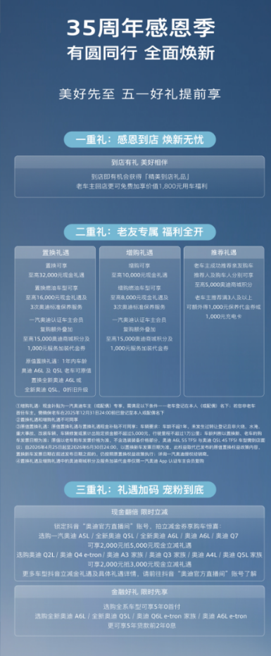 一汽奥迪35周年感恩季上线 全维度权益回馈新老用户