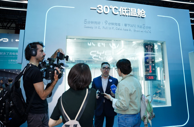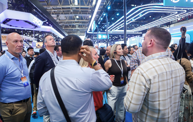而比亚迪的两大技术展区更是成为国际友人的关注核心:闪充技术实现5分钟充好、9分钟充饱、零下30℃只多3分钟的行业突破,攻克低温充电难题,颠覆全球新能源补能体验;天神之眼智能辅助驾驶系统,以全域安全架构和全场景智驾能力,展现中国汽车智能科技的优秀水平。现场实测体验区更是人气爆棚,海外参观者亲身感受硬核技术,频频点赞。