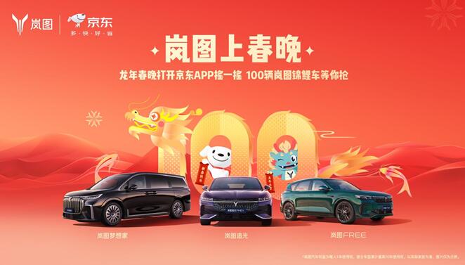 2月7日,随着春节的临近,东风岚图与京东联手在2024年央视春晚送上特别大礼,岚图FREE、岚图梦想家、岚图追光等岚图旗下“全家族车型超长使用权,至高可无限期使用。”在除夕这个深受中国人喜爱又充满仪式感的节日里,向全国人民送出春节祝福。