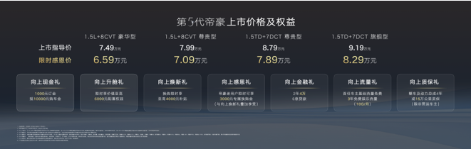 BMA Evo架构+8万级高阶智驾 第5代帝豪6.59万元起售