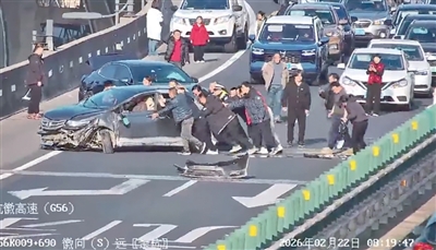 陈海鹏没有犹豫,转身跑向后方被堵的车流,敲开一扇扇车窗:“师傅您好,前面有车侧翻了,能不能帮忙推一下?”