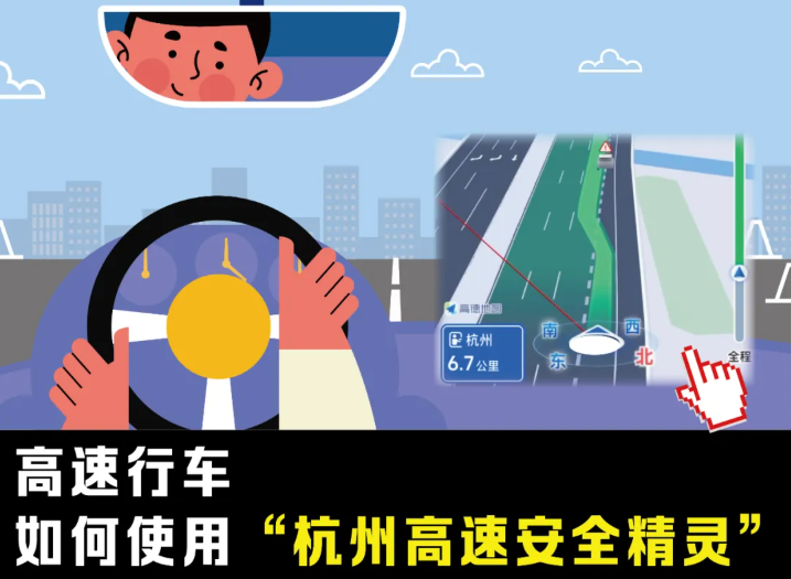雨雾天行车,前方路况不明,可借助导航平台,实时掌握前方路况信息。建议广大驾驶员高速出行提前打开导航平台,使用“杭州高速安全精灵”安全提醒功能。根据实践应用证明,使用“杭州高速安全精灵”可以对慢行车、急刹车、缓行车流等高速公路上常见的安全隐患进行在线预警,引导驾驶员提前采取措施,有效降低高速公路追尾等交通事故的发生概率。